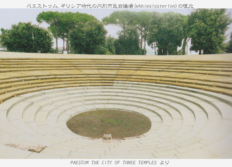 エックレシアステリオンとは、前480年頃に建造された市民が坐って会議をする場だった(20年前の発掘当時、同書より)。