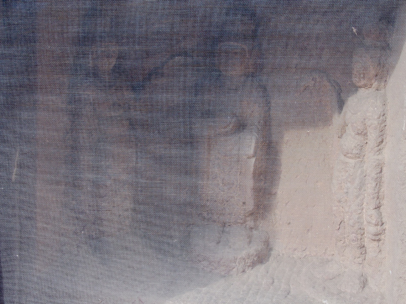 小さな窟(龕)が上下、あるいは3段に彫られているので、下の方の窟は屈んでも全体を見ることができないものもある。